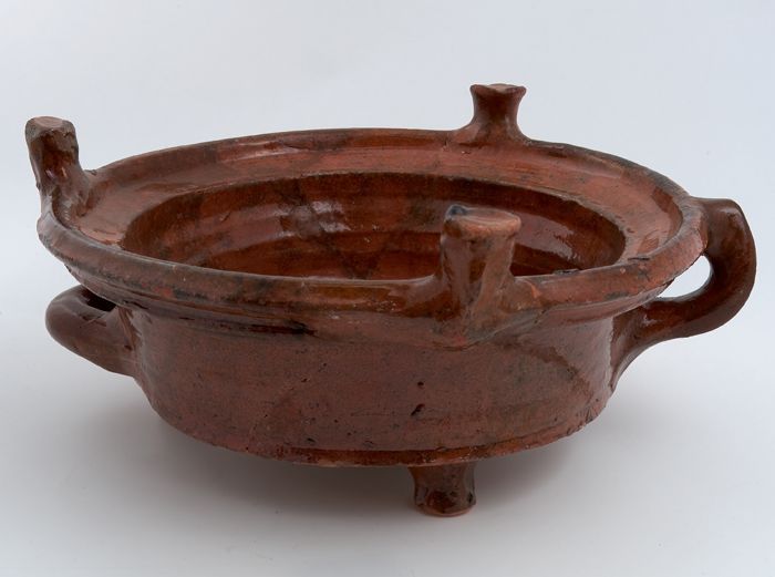 Aardewerk kookpot, grape-model, geglazuurd, twee hog...