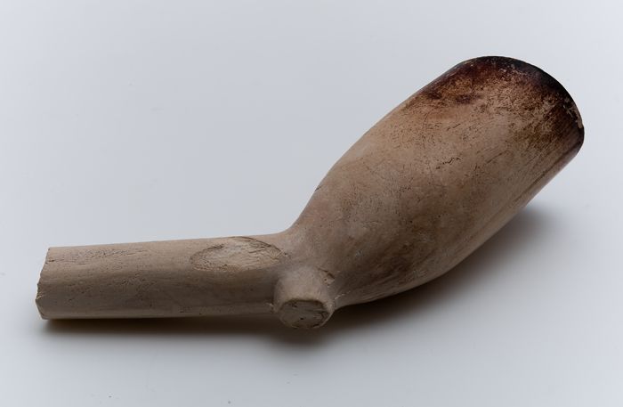 Fragment aardewerk komfoor, rode scherf, geheel gegl...