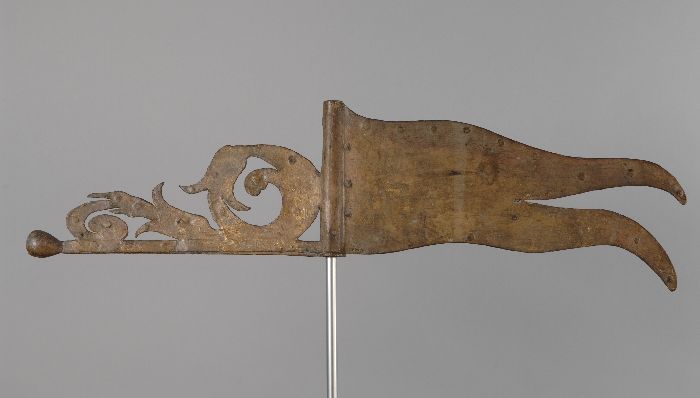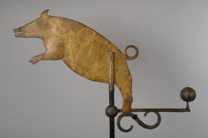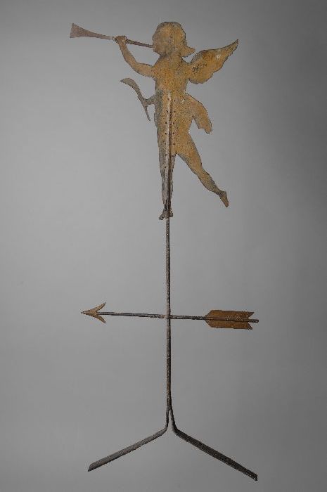 Bronskleurig geschilderd houten gevelbeeld van gehel...