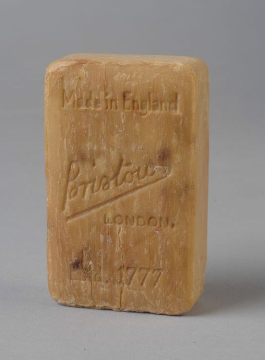 Stukje witte zeep, uit linnen zakje Rode Kruis met w...