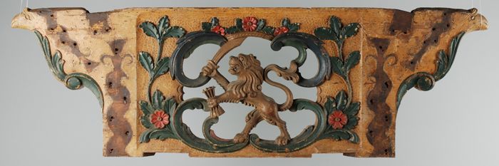 Gesneden stadswapen van Rotterdam, twee leeuwen die ...