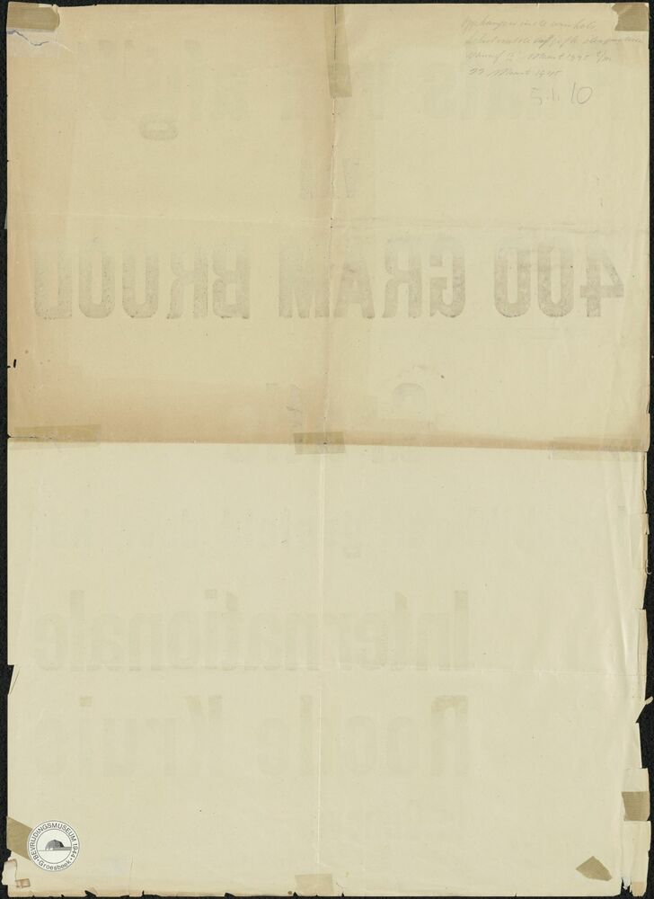 poster; plaats van afgifte 400 gram brood via Intern...