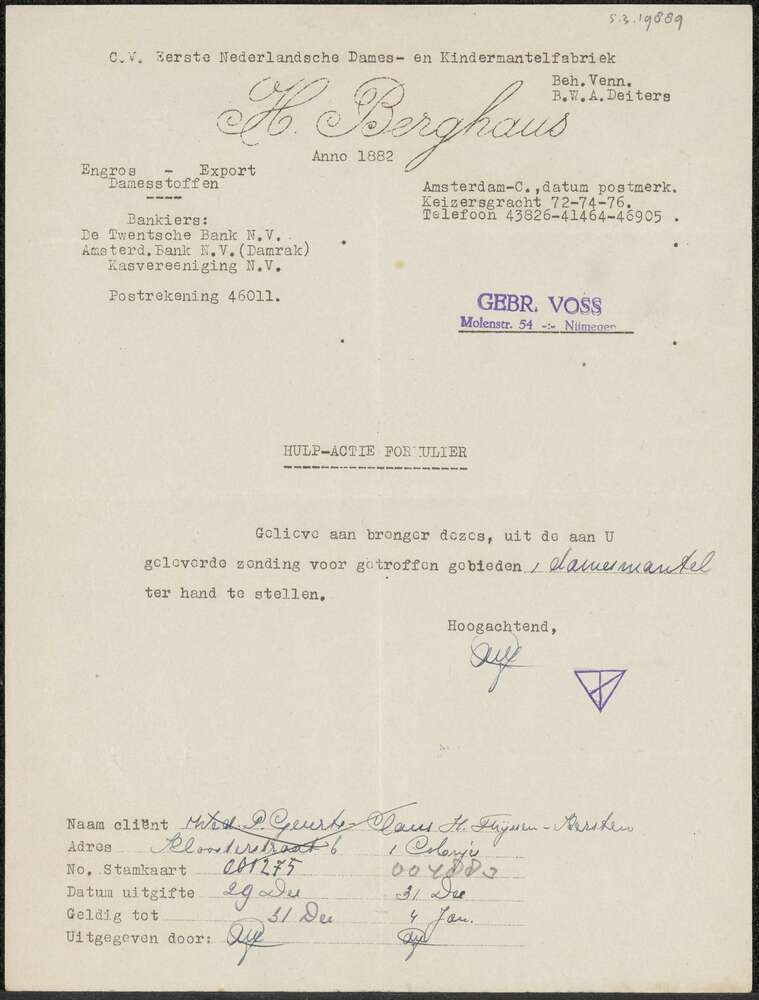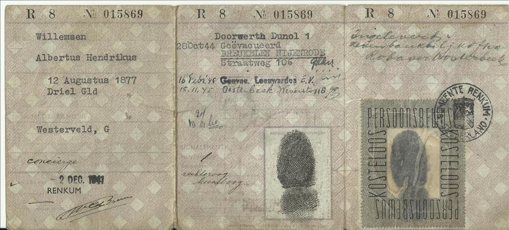 Persoonsbewijs op naam van Dhr. A.H. Willemsen
