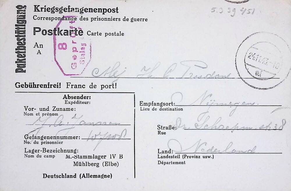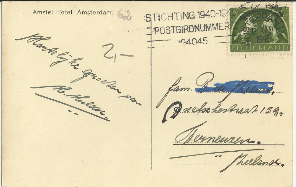 Briefkaart voor Riky Prudon te Nijmegen.