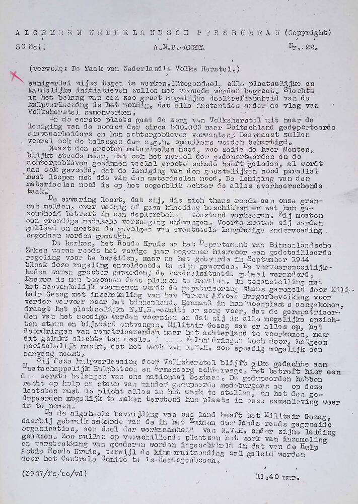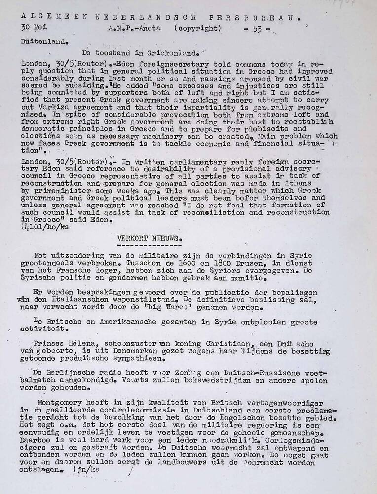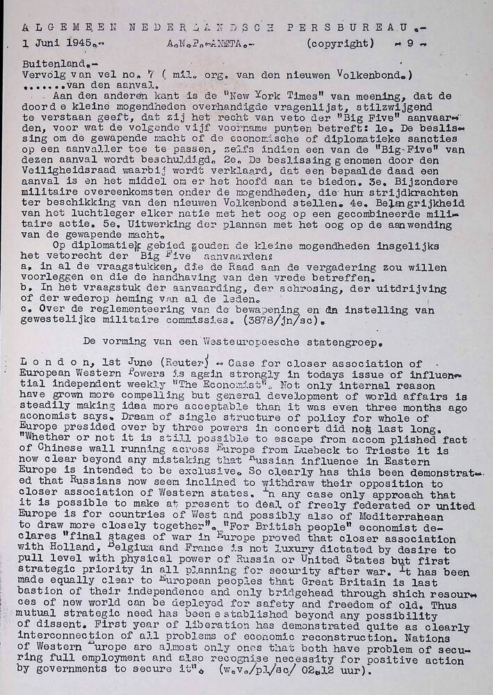 Algemeen Nederlandsch Persbureau, mededelingen, 1 ju...