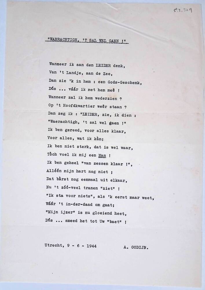 Gedicht "Waerachtig, 't sal wel gaen!" van A. Godijn...