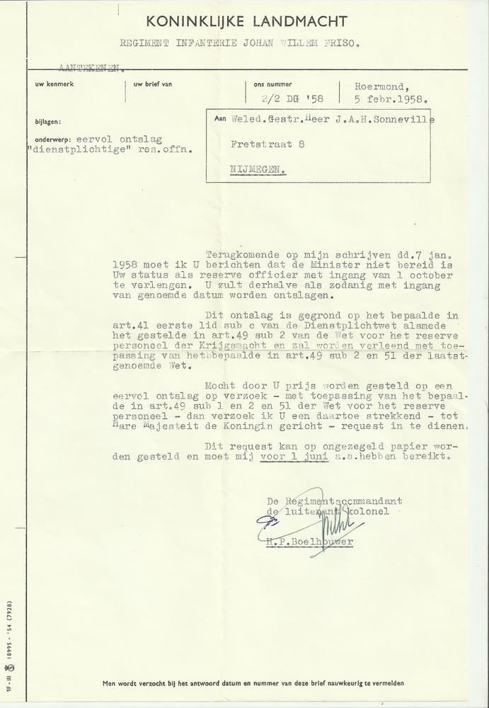 Koninklijke Landmacht - eervol ontslag 5 februari 1958