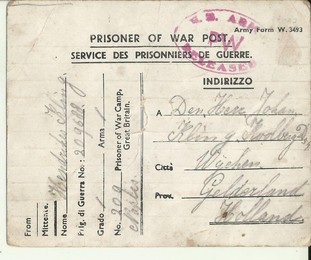 Briefkaart naar de familie van Henk Kling, d.d. 8 ju...