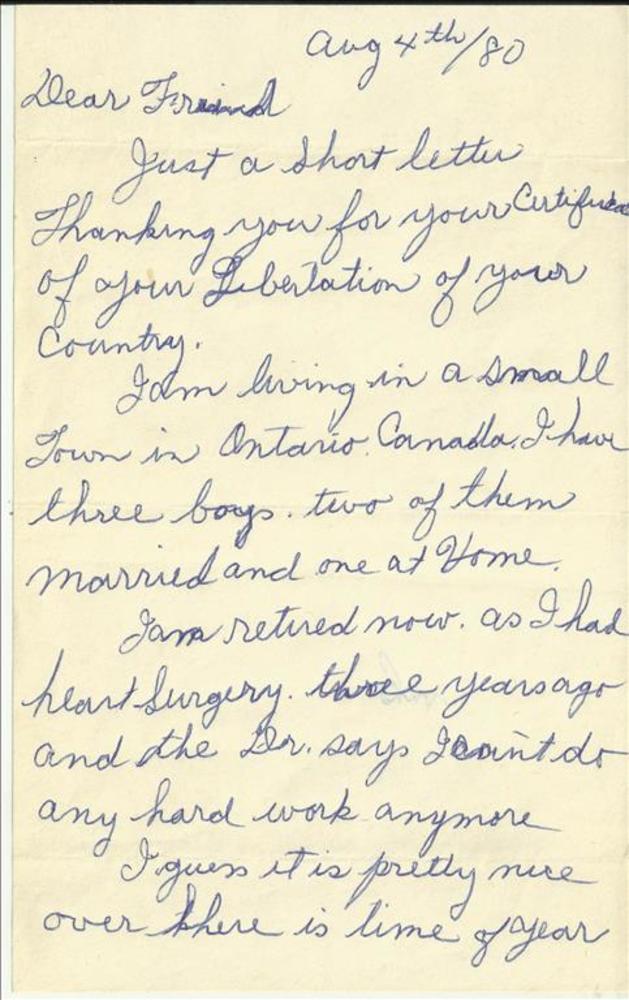 Brief aan mevr. J. Jansen van de Canadese oud-strijd...