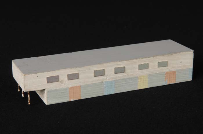 Maquette (1:200) van een gebouw van twee verdiepinge...