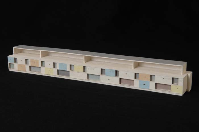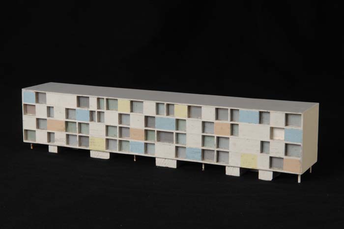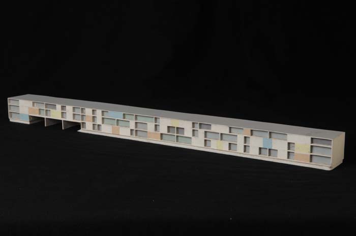 Maquette (1:200) van een galerijflat van twaalf verd...