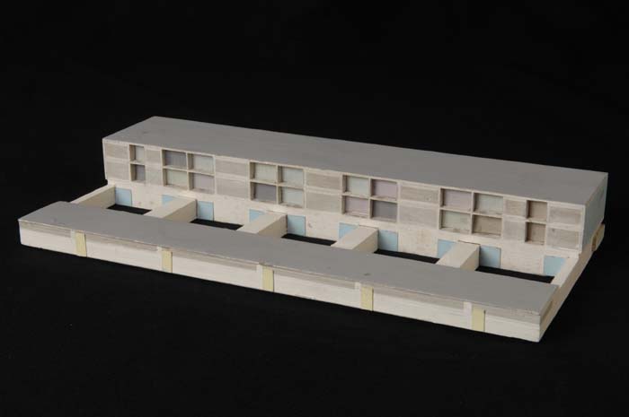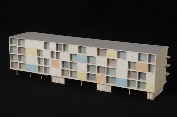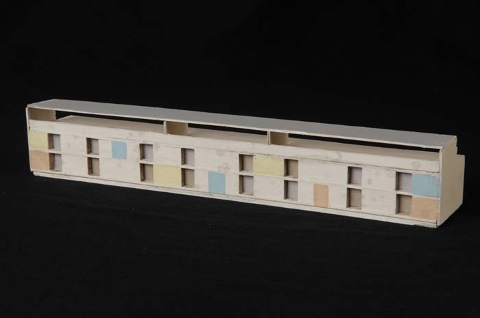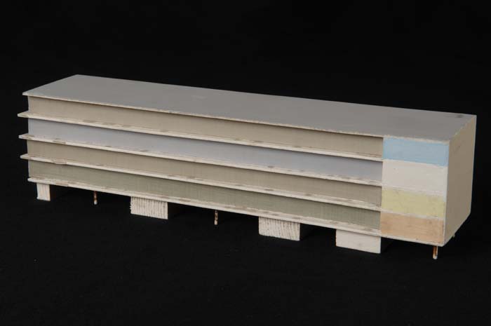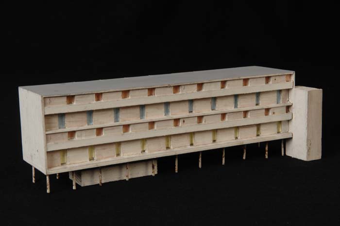 Maquette (1:200) van een flatgebouw, onderdeel van "...