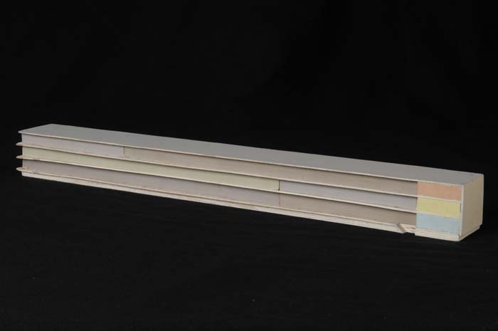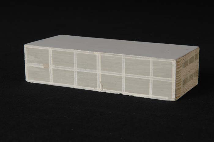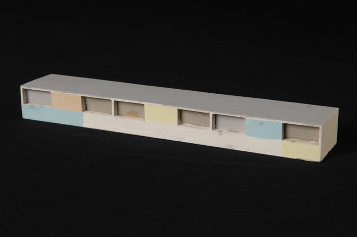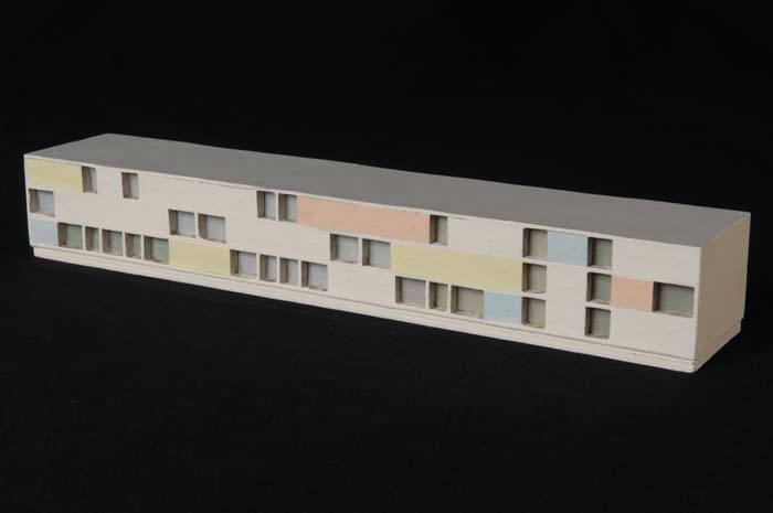 Maquette (1:200) van een flat van drie verdiepingen,...