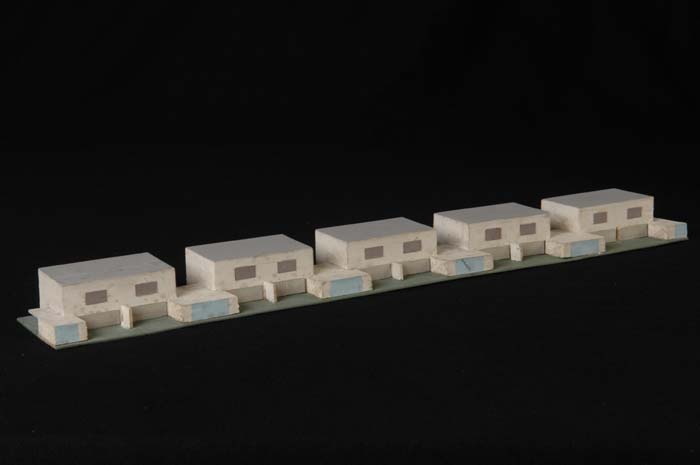 Maquette (1:200) van een vijf met elkaar verbonden g...