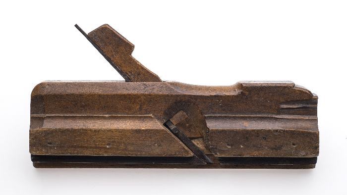 Houten ploegschaaf met ronde schroefdraadstokken en ...
