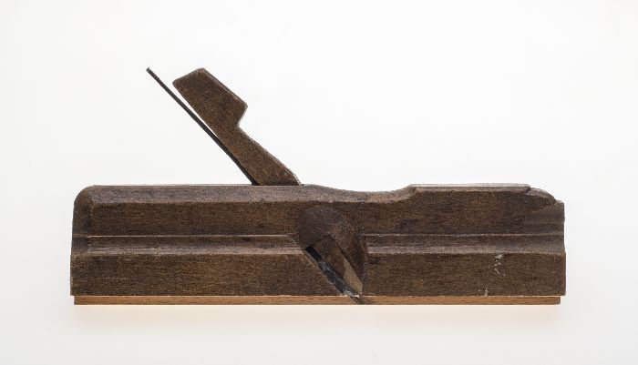 Houten messingschaaf met initialen "IBH", zonder bei...