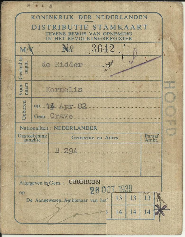 Distributiestamkaarten van de familie De Ridder