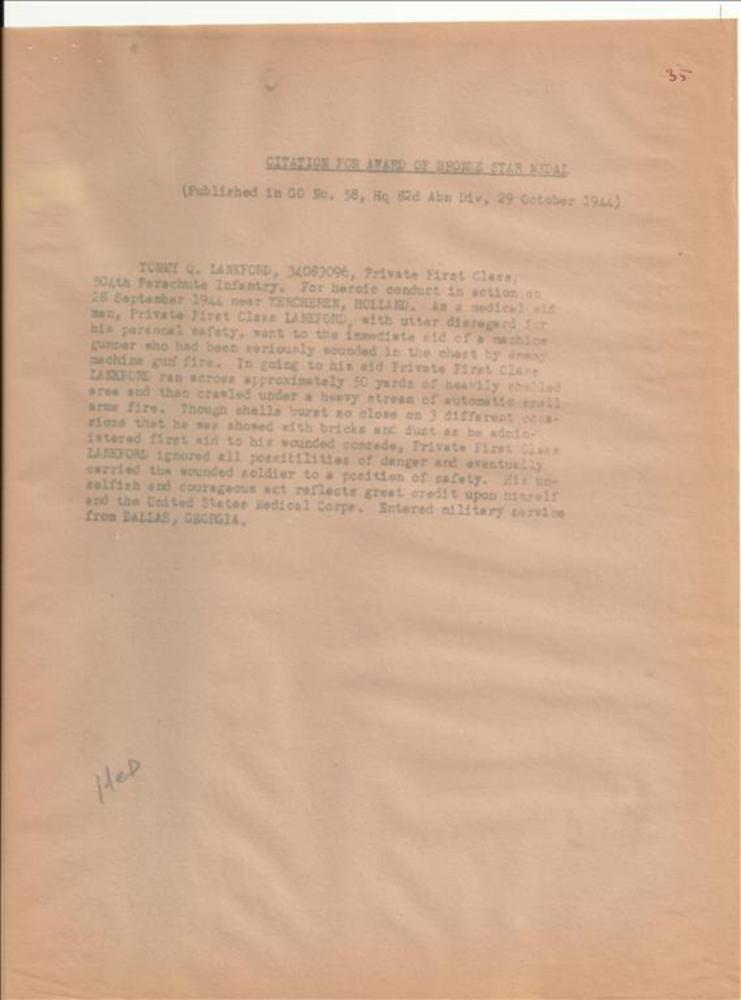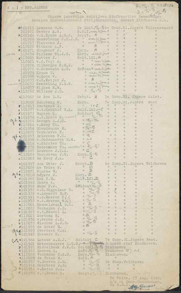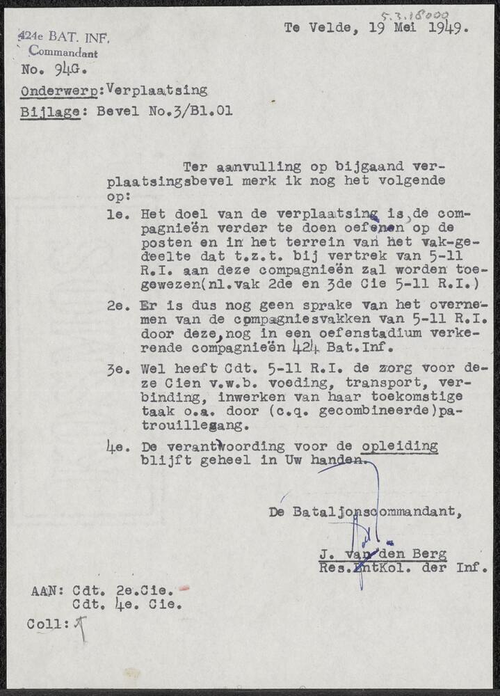 Brief van commandant 424 Bataljon Infanterie betreff...