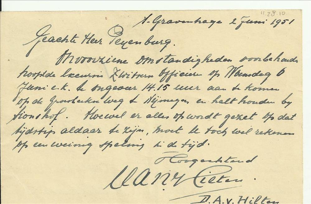 D.A.V. Hilten aan G.H.J. Peijnenburg over bezoek Zwi...