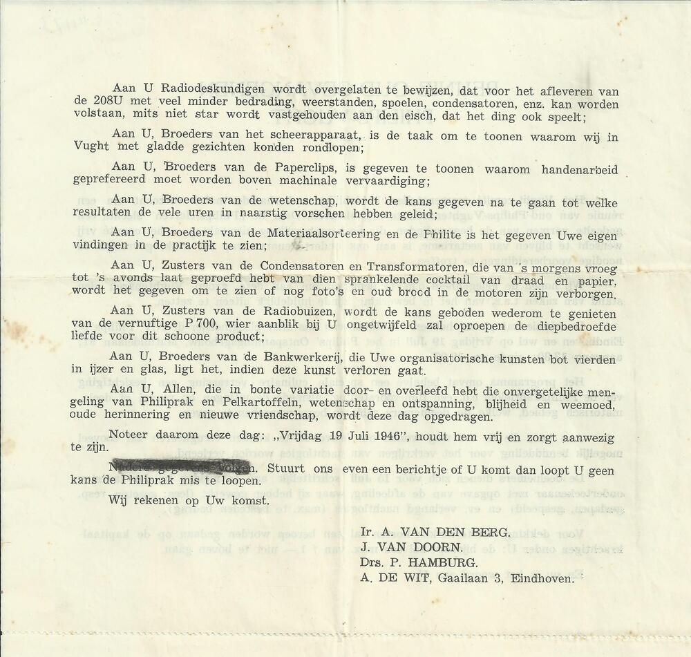 Brief met de mededeling van het Vught Comité.