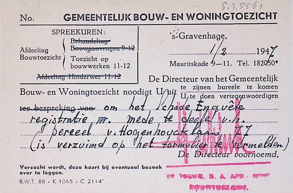 Uitnodiging van Gemeentelijk Bouw- en Woningtoezicht...