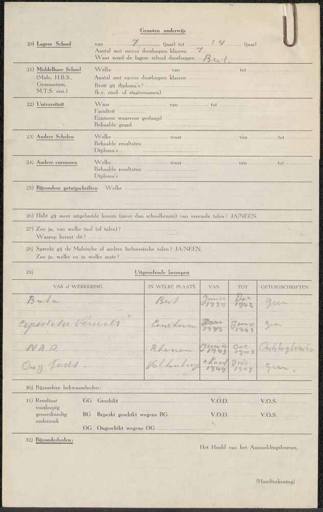 Persoonsbewijs op naam van Bol, Cornelis