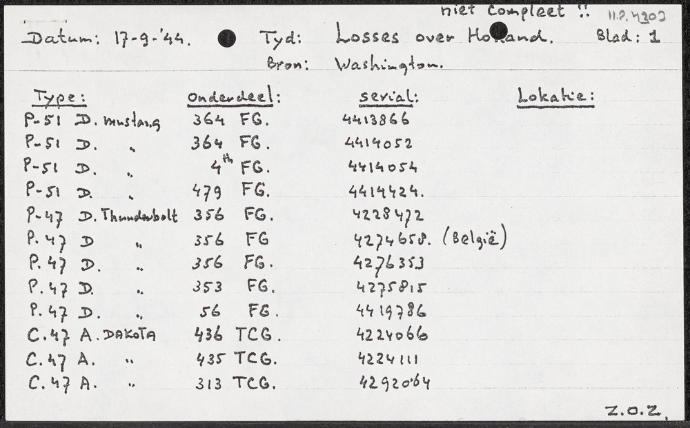 Losses over Holland USAAF 17 en 18 September 1944.