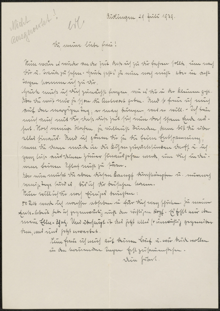 Brief aan Hubert van Ella. "3½ Wochen vor der Hochze...