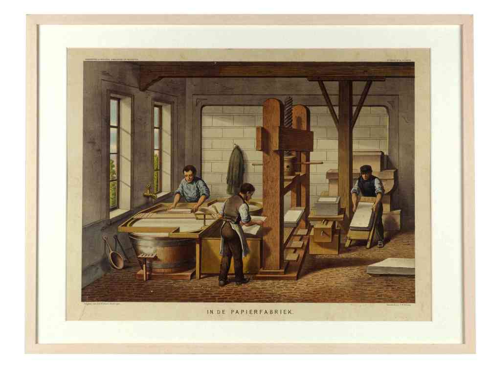 Schoolplaat getiteld 'in de papierfabriek', ca. 1930