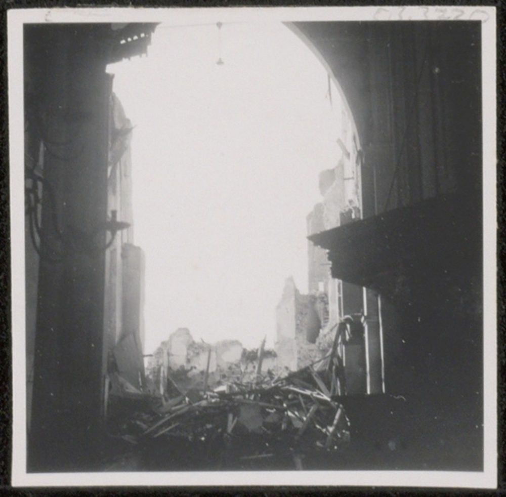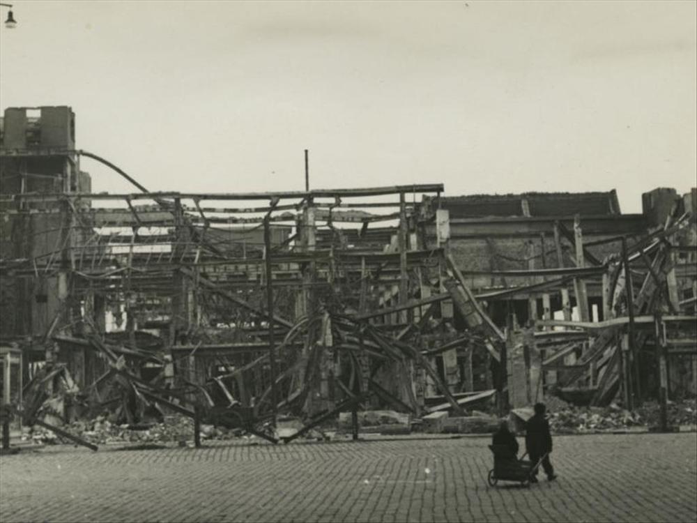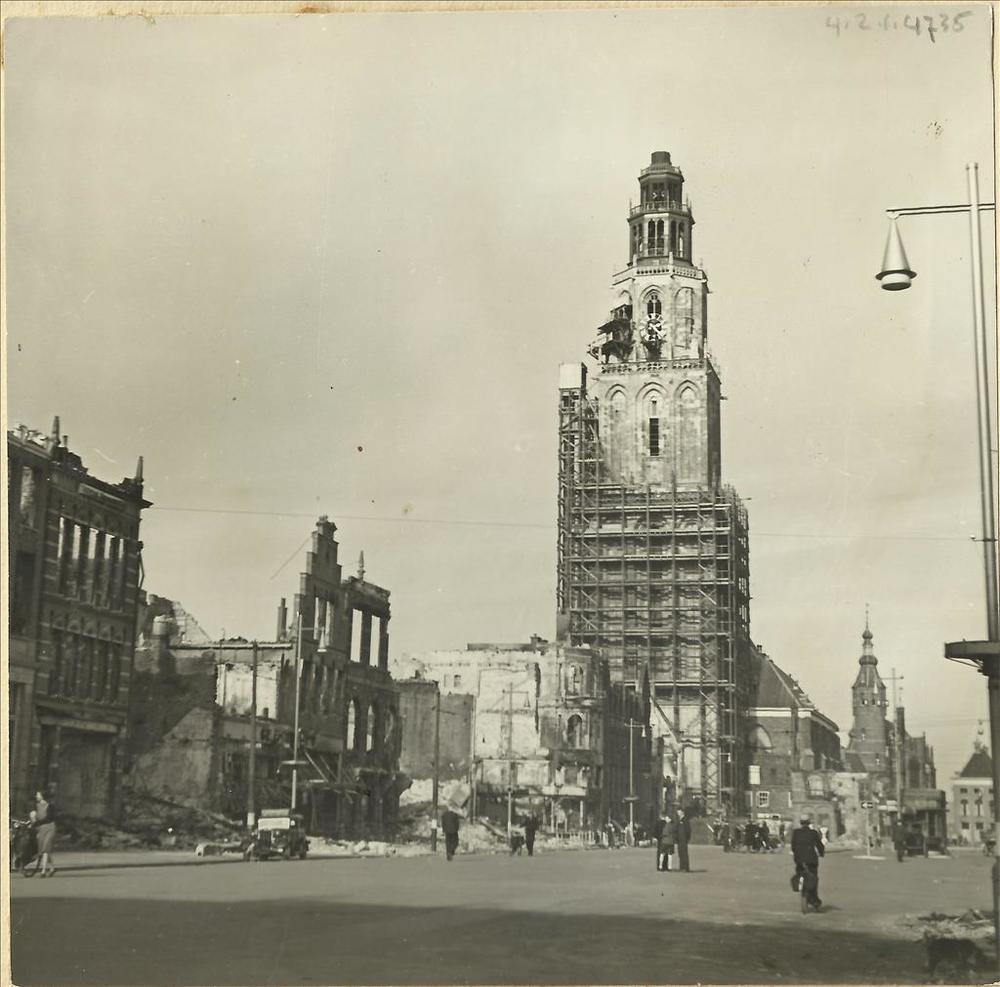 uitgebrande gebouwen aan de Grote Markt in Groningen