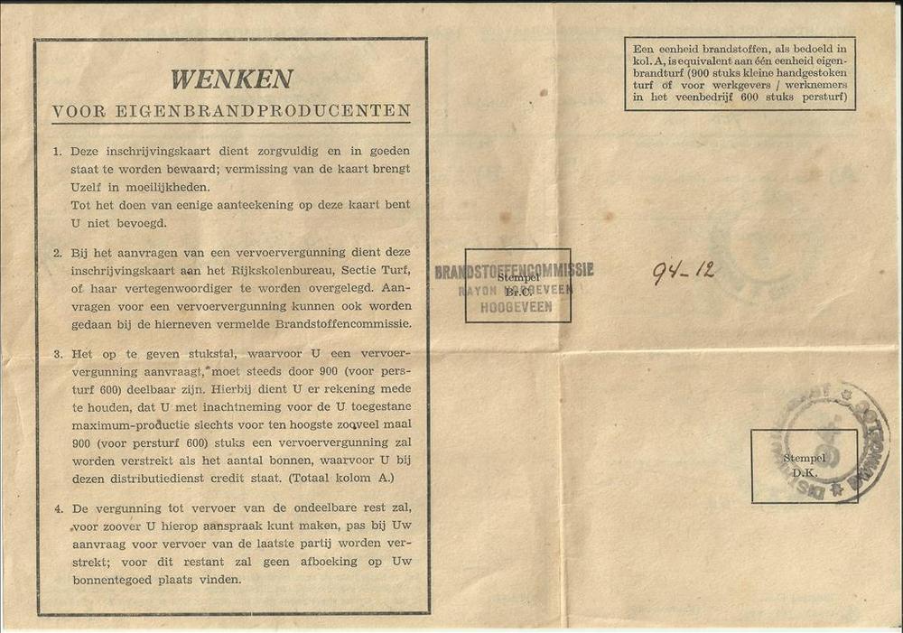 Inschrijfkaart van W. Dolfing, uitsluitend voor part...