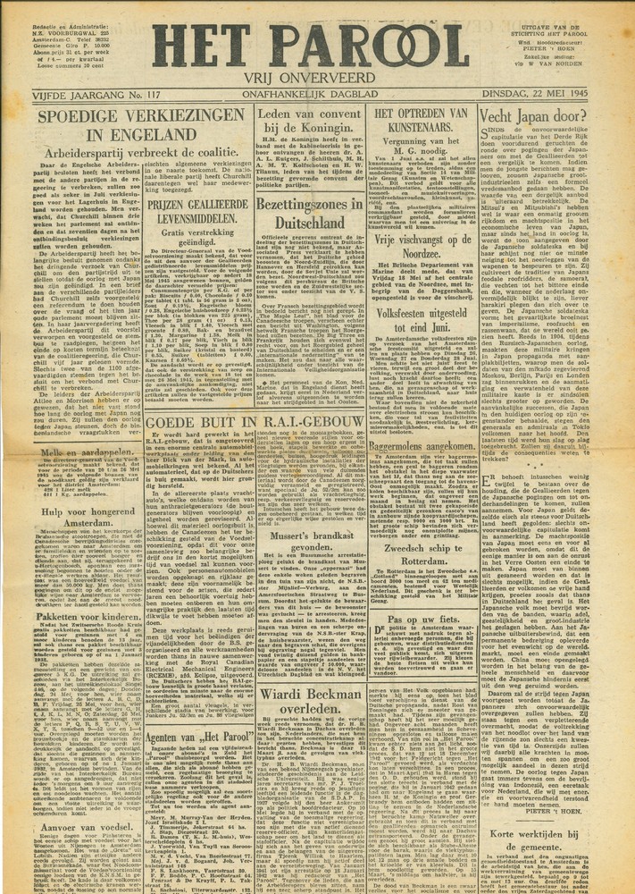 Het Parool, 22 mei 1945, 5e jaargang, No 117