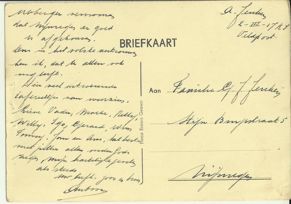 Kaart van Antoon Jeuken aan familie, 15 mei 1940