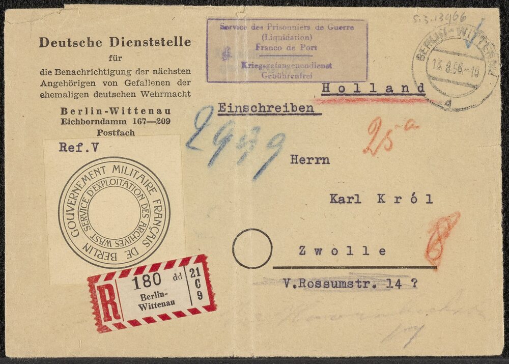 Enveloppe bij brief van de Deutsche Dienststelle für...