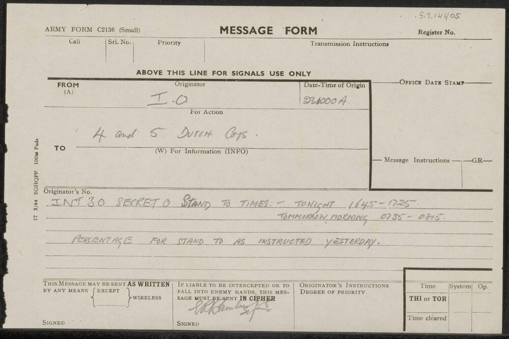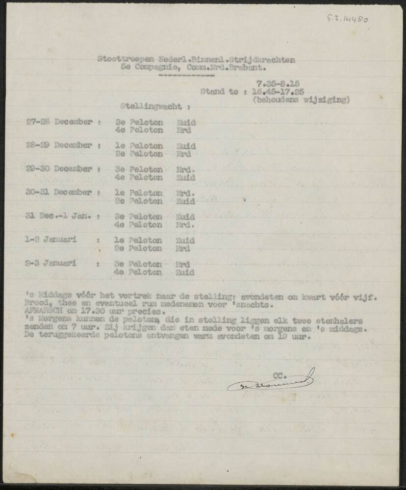Bericht van I.O. aan 4 and 5 Dutch Coys betreffende ...