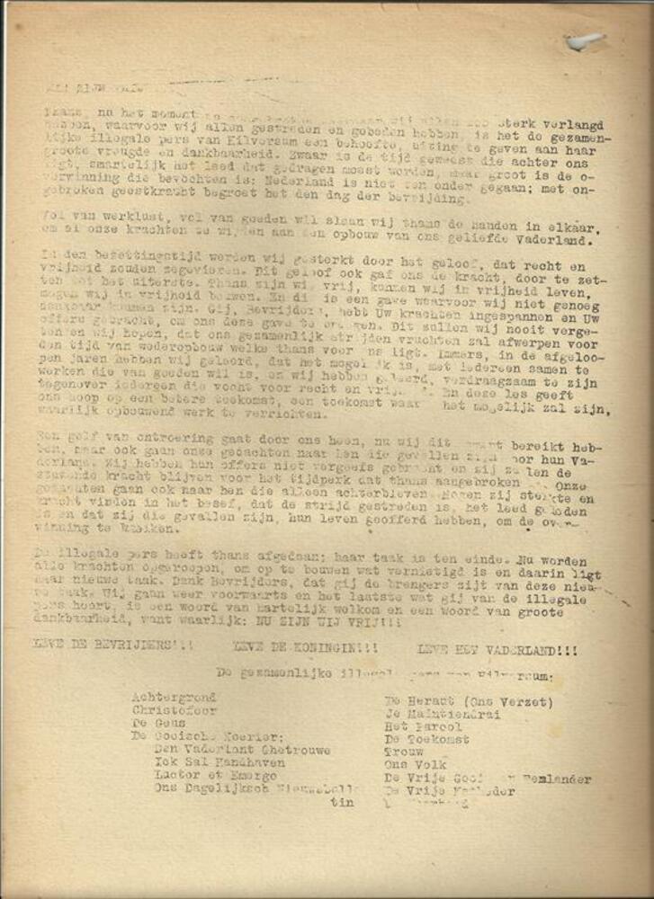 Oranjebulletin Bevrijdingsnummer van Hilversum