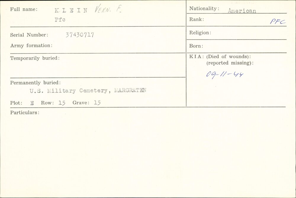 Oorlogsgraven comité kaarten Achternamen K