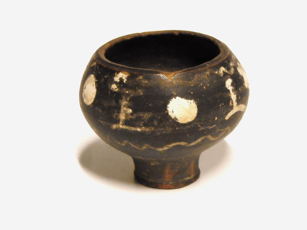 Bekertje van geverfd aardewerk beschilderd met de dr...