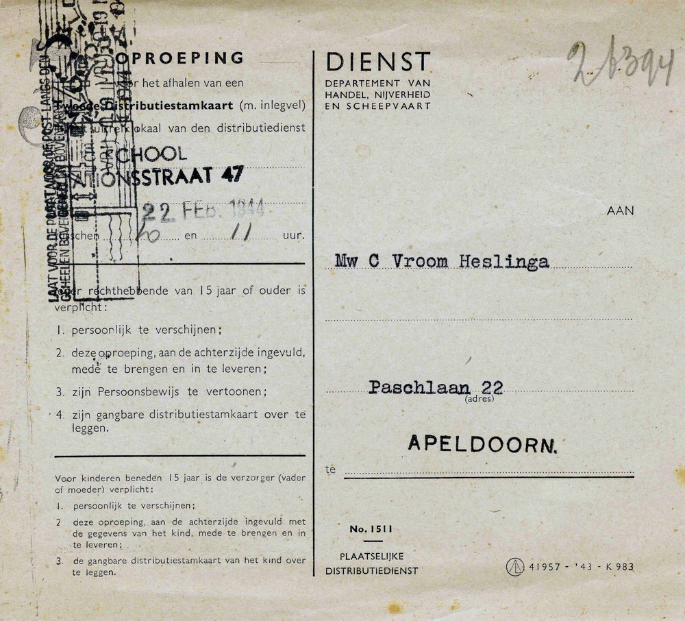 oproep voor afhalen tweede distributiestamkaart Mw. ...