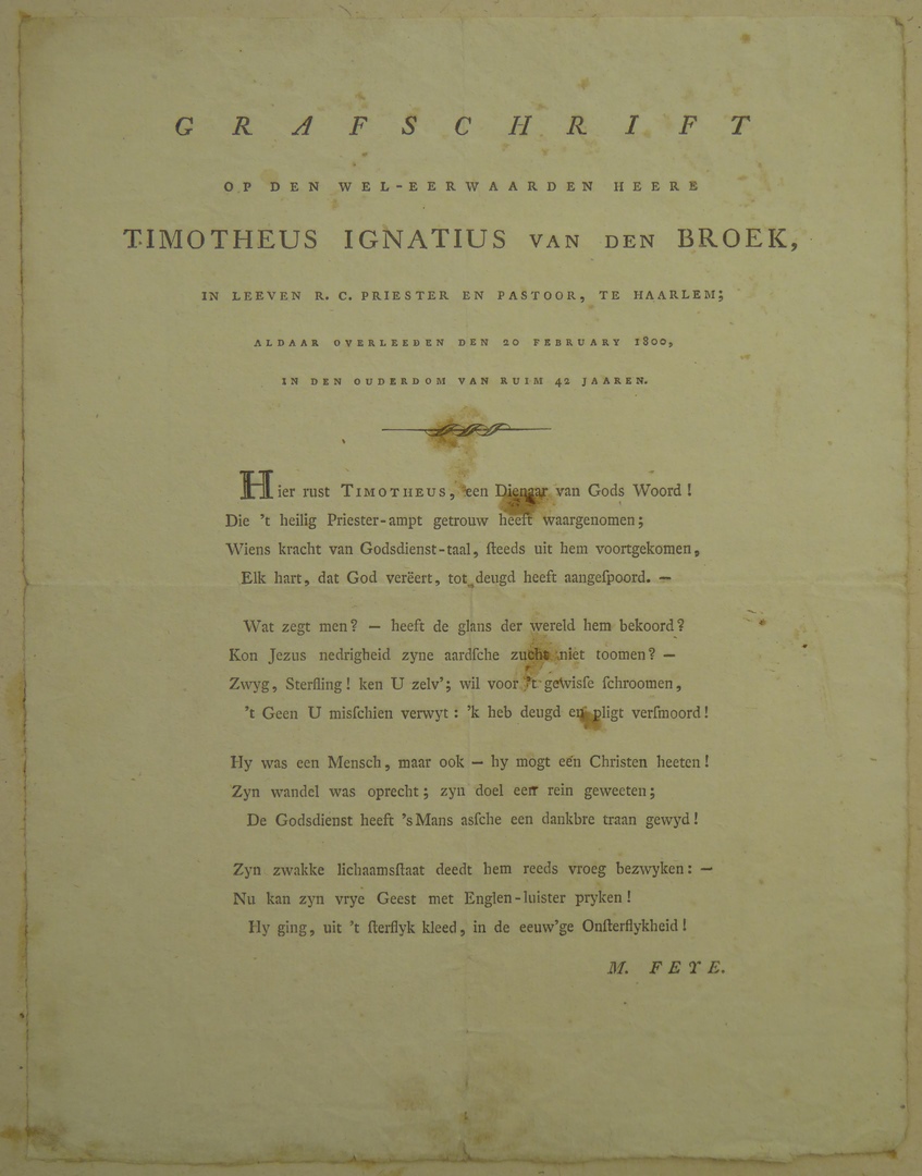 Grafschrift op Timotheus Ignatius van den Broeck, pr...