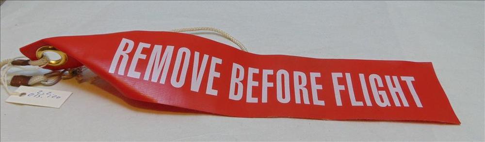 Rood vaantje met daarop de tekst : Remove Before Flight