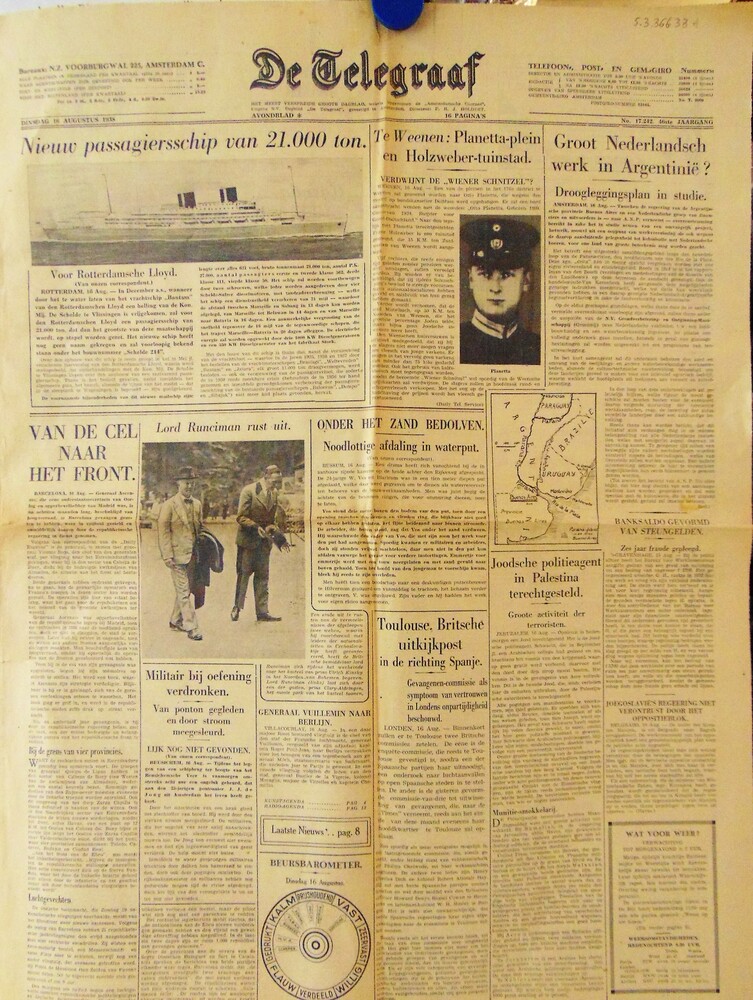 "De Telegraaf" van "Dinsdag 16 augustus 1938" "Ochte...