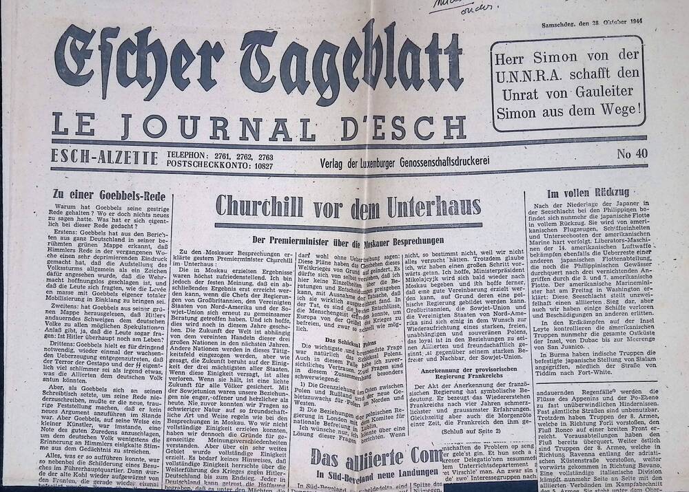 Escher Tageblatt 28 oktober 1944