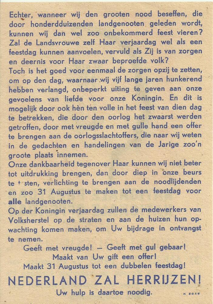 31 aug 1945. Nationale feestdag, nationale offerdag....