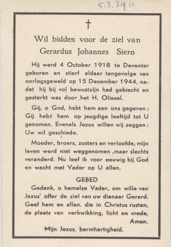 bidprentje Gerardus Johannes Siero