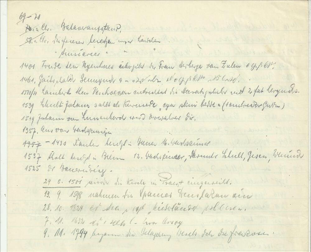 Lijst met aantekeningen van dhr Prömel