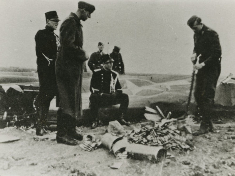 Foto van Duitse Luftwaffe militairen die munitie uit...