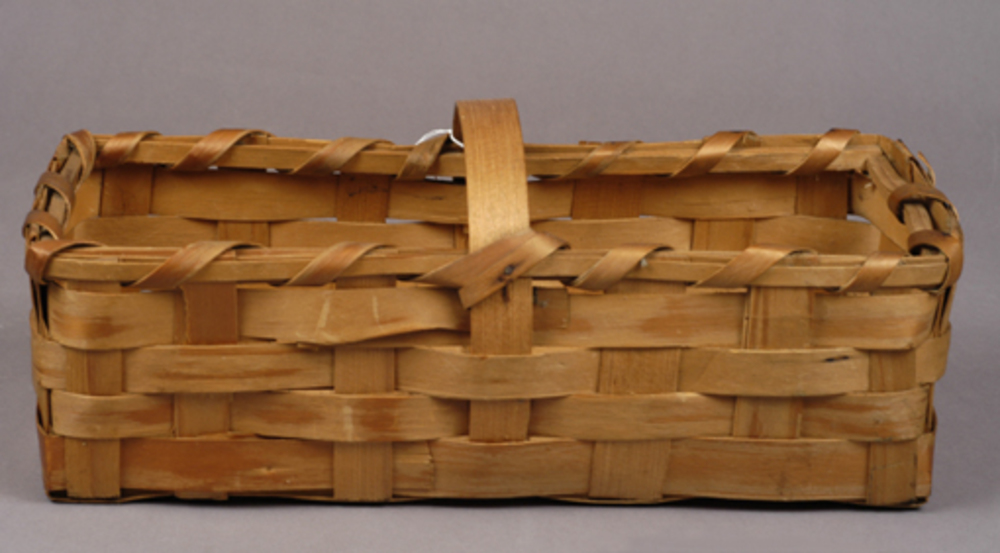 bosbessenmand van gevlochten houtspaan met hengsel, ...