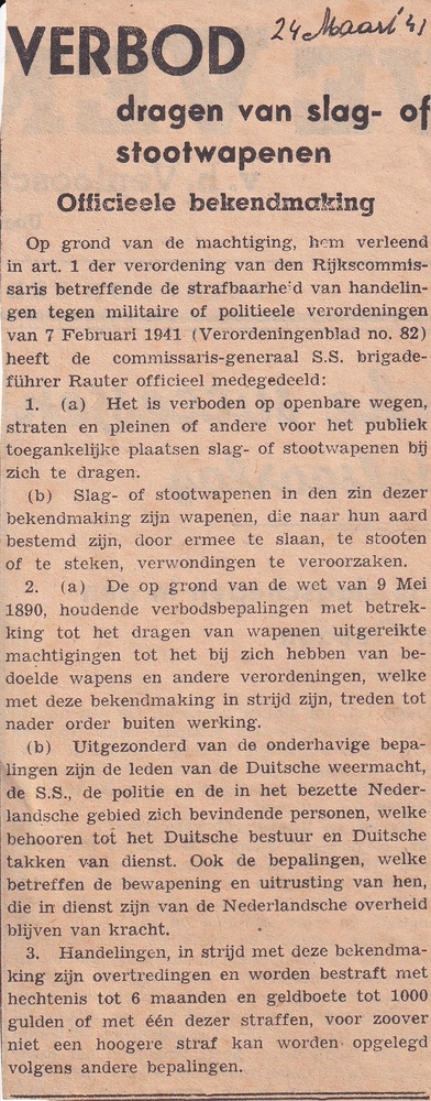 krantenknipsels 24 maart 1941