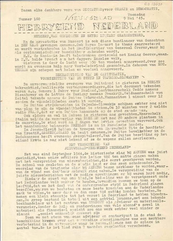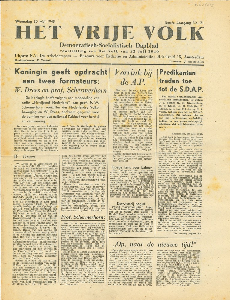 Het Vrije Volk, woensdag 30 mei 1945, eerste jaargan...